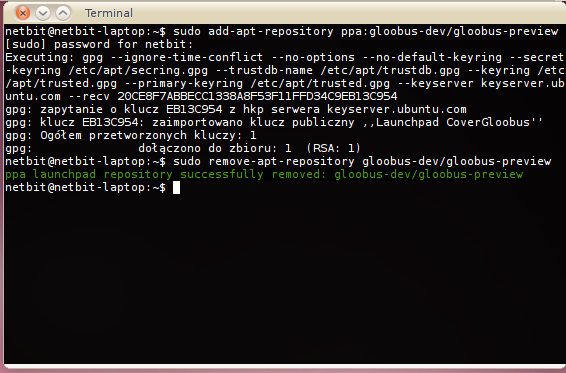 sudo remove-apt-repository gloobus-dev/gloobus-previewProszę zwrócić uwagę, że pomijamy ppa: